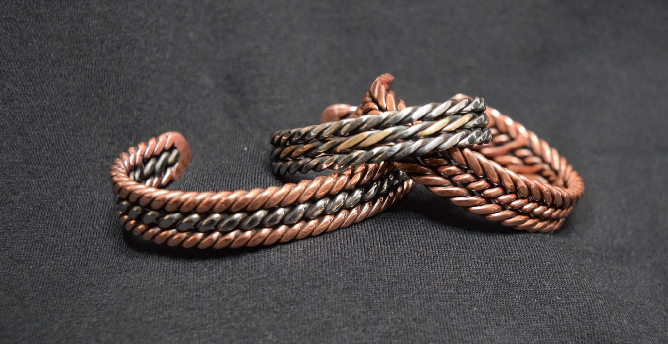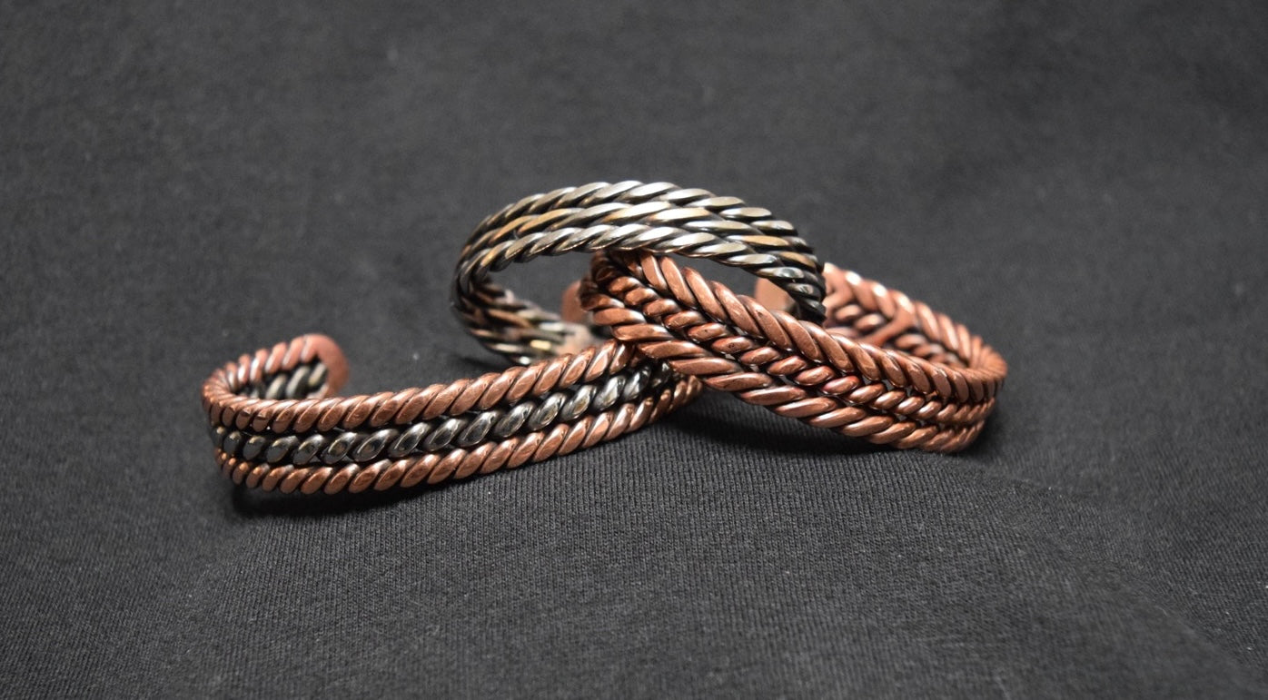 4 Row Twisted Stainless and Copper Welder Bracelet