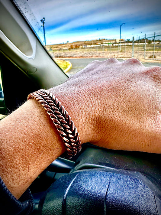 4 Row Twisted Stainless and Copper Welder Bracelet